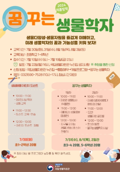 서민환 국립생물자원관장은 “이번 여름방학 생물다양성교육을 통해 어린이와 청소년들이 생물다양성의 중요성을 깨닫고 미래 전문가의 꿈을 키우는 계기가 되길 바란다”라고 밝혔다.