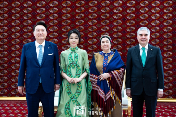 [뉴스서치] 김건희 여사는 오늘(현지시각 6. 11, 화) 오전 윤석열 대통령 부부와 '구르반굴리 베르디무하메도프(Gurbanguly Berdimuhamedov)' 최고지도자 겸 인민이사회 의장 부부의 오찬 전, 최고지도자 배우자인 '오굴게렉 베르디무하메도바(Ogulgerek Berdimuhamedova)' 여사와 별도 친교 시간을 갖고, 양국 문화에 대해 폭넓은 대화를 나눴다. 동 자리는 베르디무하메도바 여사가 김 여사의 방문을 환영하고자 특별히 요청해 이뤄졌다.