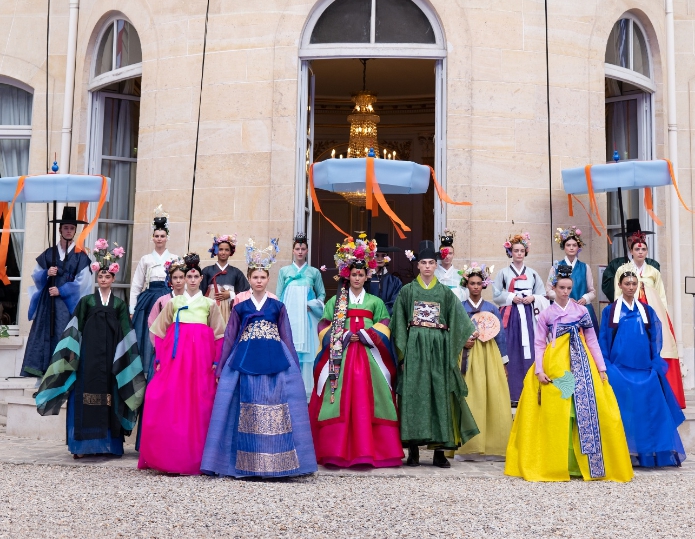 서영희* 스타일리스트가 예술감독을 맡아 연출을 총괄한 이번 한복 패션쇼에는 김영진, 김인자, 김지원, 김혜순, 송혜미, 유현화, 이혜순(가나다순) 등 국내 한복 디자이너 총 7인이 참여했다. 한복 디자이너들은 파리 현지에서 활동하는 모델 20인과 함께 관계, 계례(성년례), 혼례 등 한국 전통 의례에서의 예복 등을 주제로 한 다양한 한복을 야외무대에서 선보였다.
