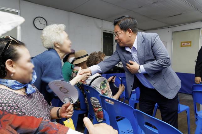 ▲ 박강수 마포구청장이 더운 여름을 나고 있는 어르신들을 찾아 건강과 안부를 살피고 있다. |