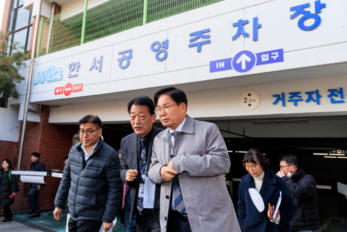 ▲ 지난해 2월 박강수 마포구청장이 시설 및 운영 개선을 위해 한서공영주차장을 방문을 했다 |