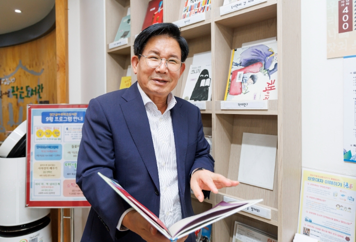 ▲ 성산 글마루 작은도서관에 방문한 박강수 마포구청장 |