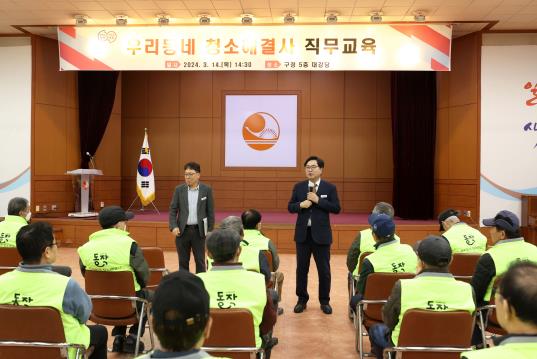 ▲ 우리동네 청소해결사 직무교육에서 인사말 하는 박일하 동작구청장 |