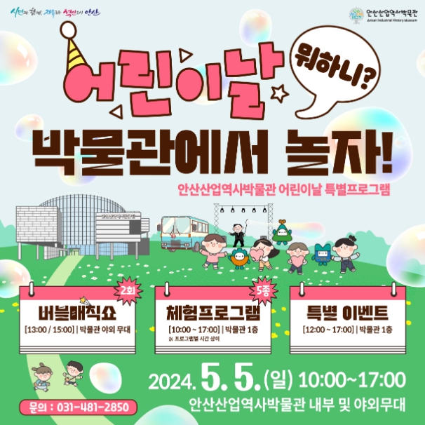 ▲ 안산시는 다음 달 5일 안산산업역사박물관에서 102주년 어린이날을 기념해 특별프로그램 ‘어린이날 뭐하니 박물관에서 놀자!’를 운영한다_홍보 포스터 |