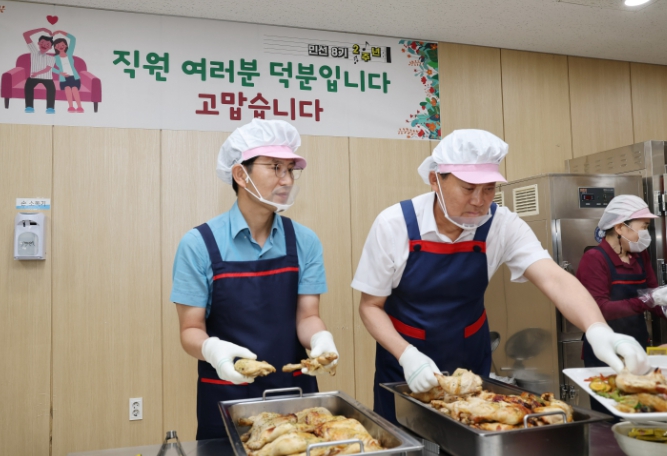 아울러 점심시간에는 하은호 시장이 안동광 부시장과 함께 구내식당에서 직원들을 위한 배식에 참여하여 직원들에게 고마운 마음을 직접 표현함으로써 구내식당을 찾은 직원들을 깜짝 놀라게 했다.