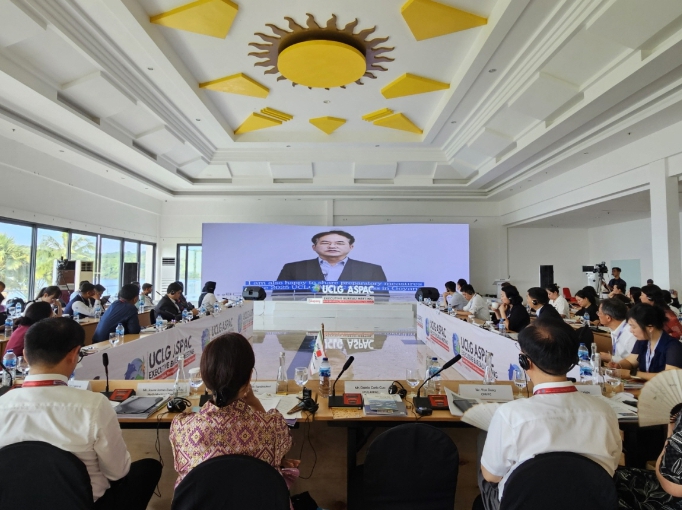 [뉴스서치] 고양특례시는 6월 5일부터 7일까지 인도네시아 북미나하사에서 개최된 2024년 세계지방정부연합 아태지부(UCLG ASPAC) 제1차 집행부회의에 시 대표단이 참석하여 내년 9월 개최 예정인 제10차 UCLG ASPAC 고양 총회 준비사항과 주요 주제를 발표했다고 밝혔다.