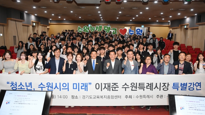 이 자리에서 이재준 시장은 학생들에게 수원시의 기업과 일자리 지원 정책, 청소년·청년지원 정책 등을 소개했다. 또 자신의 어린 시절부터 현재까지 꿈을 좇은 도전과 고민에 대한 이야기도 전했다.