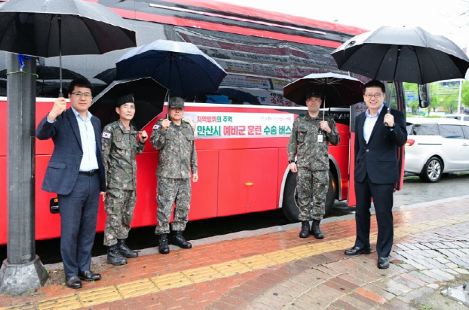 수송 전용 버스는 예비군 법에 근거, ‘안산시 예비군 훈련장 차량운행 지원에 관한 조례’가 지난해 10월 4일 제정된 이후, 올해부터 총 2대(45인승)의 차량이 훈련편성 도합 111일간 예비군 훈련 시 운행될 계획이다.