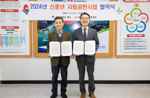 [뉴스서치] 부산 북구는 지난 3월 27일 사회적 가치를 실현하기 위한 신중년 사회공헌사업과 관련 ‘금곡종합사회복지관’과 업무협약을 체결하였다.