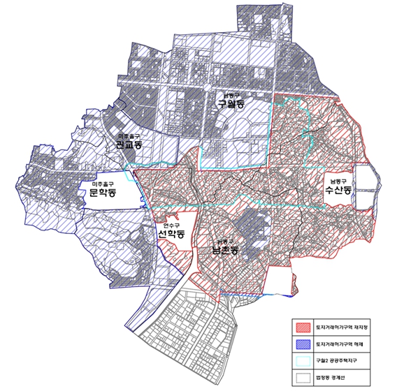 인천광역시는 오는 9월 20일 지정기간 만료에 따라 미추홀구 관교․문학동 전부, 연수구 선학동, 남동구 구월․남촌․수산동 등 주거 및 상업지역 8.48㎢를 7월 26일 자로 일부 해제한다고 밝혔다.
