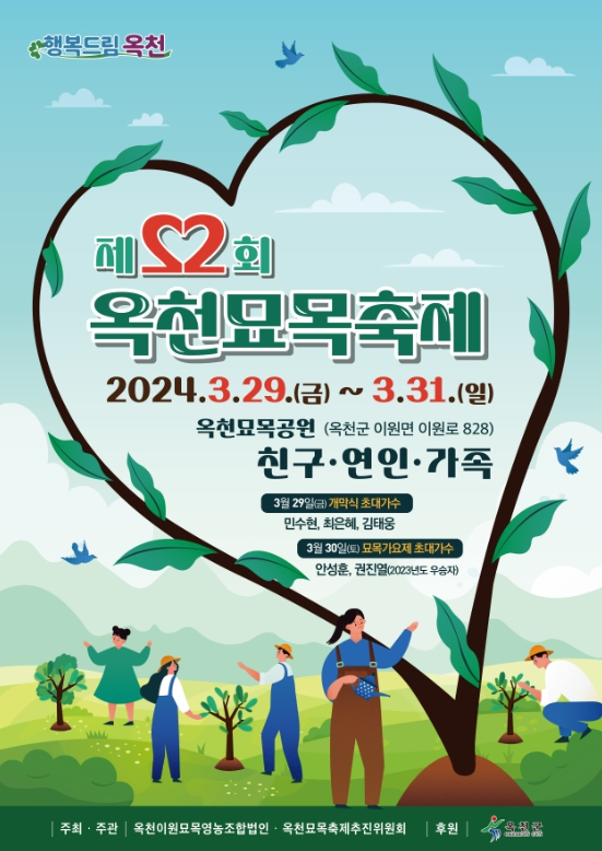 옥천묘목축제추진위원회 김영식 회장은 “옥천묘목축제의 투투를 기념해 친구, 연인, 가족이 함께할 수 있는 축제를 구성했다”며 “사랑하는 사람과 함께 방문하여 즐거운 추억을 쌓으시길 바란다”고 말했다.