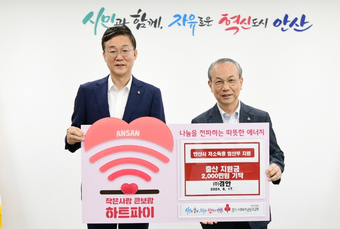 [뉴스서치] 안산시는 ㈜경안으로부터 관내 저소득층 임산부 및 출산 가구를 지원하기 위한 지원금 2,000만 원을 기탁받았다고 18일 밝혔다.