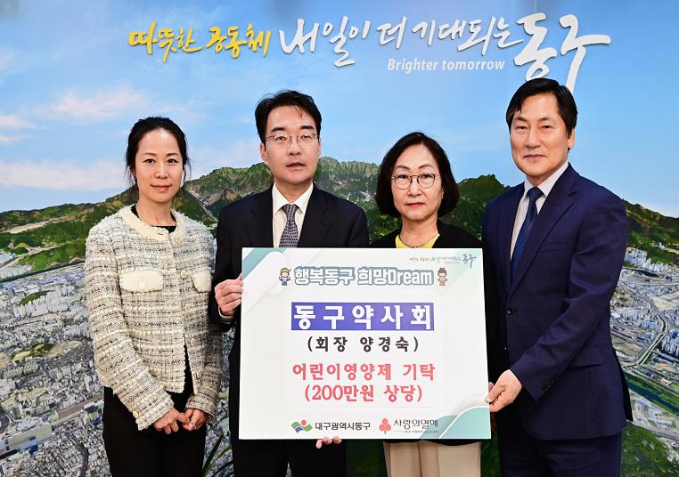 양경숙 동구약사회장은 “어린이날을 맞아 지역 내 어린이들에게 작은 선물을 전달하게 되어 기쁘다.”며 “앞으로도 지역사회 어린이들의 건강한 성장을 지원하겠다.”고 말했다.