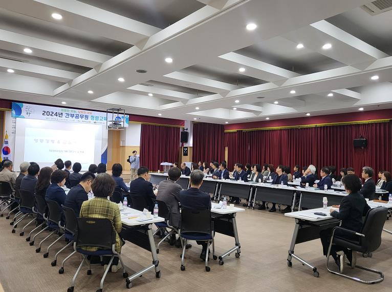 김재필 국민권익위원회 청렴 전문 강사가 강의를 했으며, 단순 이론 중심 강의에서 벗어나 공직사회 내 갑질 상황과 청렴의무 위반에 대한 다양한 사례를 제시하고 퀴즈 풀이를 통해 간부 공무원들의 청렴 의식과 반부패 제도에 대한 이해도를 높였다.