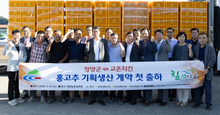 [뉴스서치] 청양군은 지난 31일 치킨 브랜드 매출 1위 기업 교촌치킨과 청양고추 납품 계약재배를 실시하고 청양농협 집하장에서 첫 출하식을 진행했다.