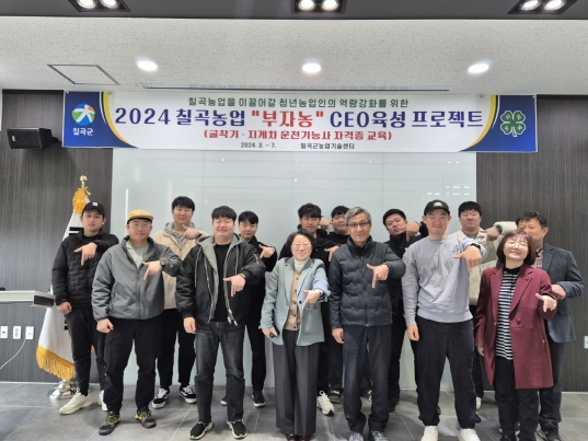 [뉴스서치] 칠곡군농업기술센터에서 지난 13일 칠곡농업 부자농“CEO”육성 프로젝트의 일환으로 굴착기·지게차운전능사 자격증반 개강식을 했다.