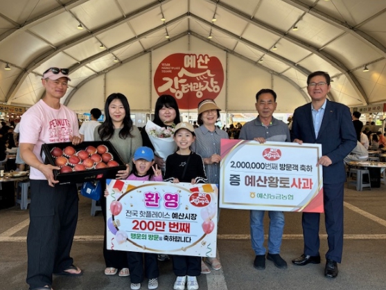 행운의 주인공은 전북 김제에서 온 박준호(68)씨 가족으로, 군은 축하 꽃다발과 예산능금농협조합(조합장 권오영)에서 후원한 예산황토사과를 기념품으로 전달했다.