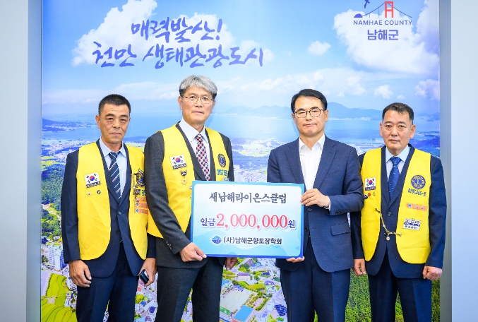 새남해 라이온스클럽 제45대 김경언 회장은 “새로운 마음으로 새롭게 도약을 준비하며 남해군 청소년들에게 밝은 미래를 선물하고자 향토장학금을 기탁한다.”며 “그아이들이 자라서 남해의 또 다른 후배들에게도 도움을 줄 수 있었으면 좋겠다.”고 밝혔다.