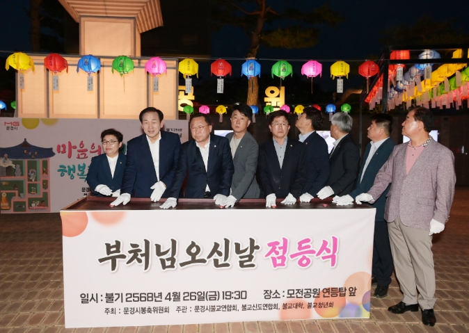 [뉴스서치] 문경시불교연합회는 불기 2568년 부처님 오신 날(5월 15일)을 앞두고 4월 26일 19시 30분에 모전공원 광장에서 봉축탑 점등식을 봉행했다.