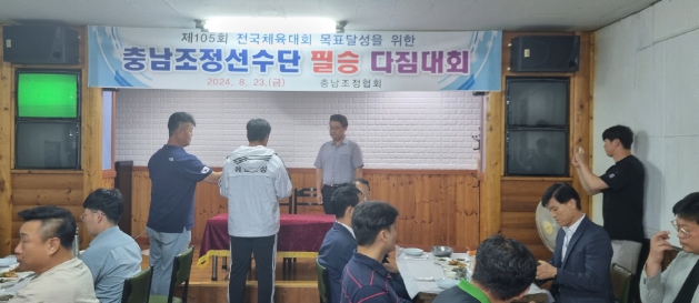 [뉴스서치] 지난 23일 충남조정협회는 전국체전 목표달성을 위한 필승 다짐 대회를 가졌다. 이 날 대회에는 충남조정협회 최일권 회장을 비롯하여 도내 4개팀 50여명의 선수 및 관계자들이 참석하여 자리를 빛냈다.