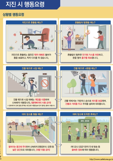 ▲ 지진 발생 시 상황별·장소별 행동요령 |