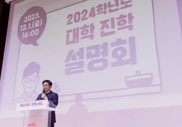 박강수 마포구청장은 “미래를 위해 열심히 노력하고 있는 학생과 학부모님들에게 도움이 되고자 진학‧입시설명회를 준비하게 됐다”라며 “이번 설명회를 통해 대학 진학에 대한 궁금증과 불안감을 해소하길 바라며, 마포구는 청소년들이 원하는 꿈을 이룰 수 있도록 항상 응원하고 지원을 아끼지 않겠다”라고 전했다.