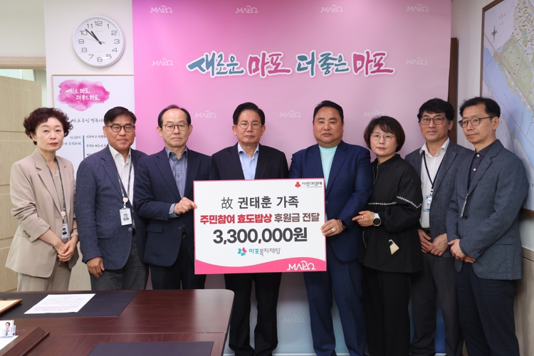 기탁식에는 권경환 씨와 아내 김윤주 씨를 비롯해 박강수 마포구청장과 마포복지재단 이사장 등 10여 명이 자리를 함께했다.