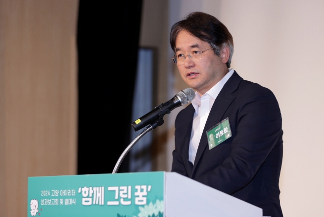 ▲ ‘2024 고양 아이리더 성과보고회 및 발대식'에서 인사말 중인 이동환 고양특례시장 |