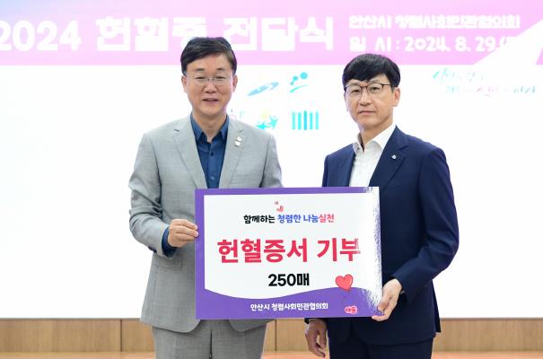 [뉴스서치] 안산시 청렴사회민관협의회는 지난 29일 시청 제1회의실에서 안산고려대학병원에 헌혈증 250매를 기부하는 자리를 마련했다고 30일 밝혔다.