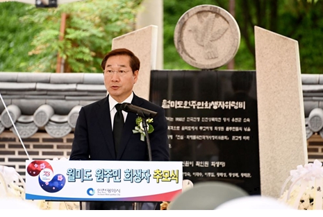 | ▲ 유정복 인천광역시장이 2023년 9월 15일 중구 월미공원 월미도 원주민 희생자 위령비에서 |