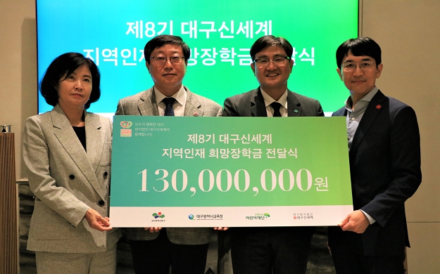 대구신세계 지역인재 희망장학금은 동구청, 대구교육청, 어린이재단 등으로부터 추천을 받아 대구지역 중·고등학생에게 장학금을 전달한다. 대구 동구는 34명의 학생이 장학금을 받게 됐다.