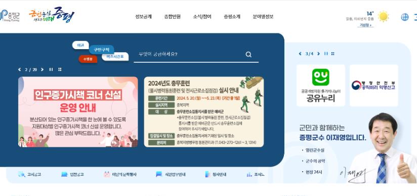 | ▲ 증평군 인구증가시책 정보 한눈에... 누리집 코너 신설 |
