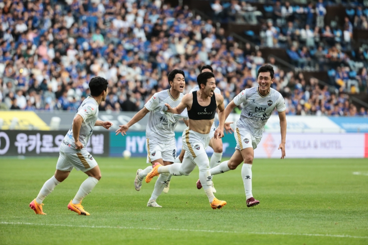 ▲ 12일 울산전에서 극적인 동점골을 넣은 김천상무 김태현이 골 셀레브레이션을 하고 있다. |