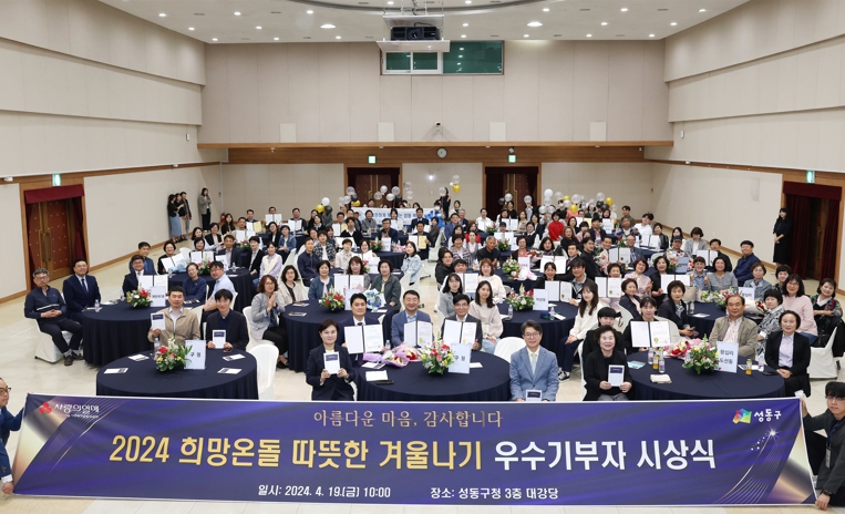[뉴스서치] 서울 성동구는 지난 19일 이웃과의 나눔 실천으로 온기를 더해준 기부자들에게 감사의 마음을 전하고자 '2024 희망온돌 따뜻한 겨울나기 우수기부자 시상식'을 개최했다.