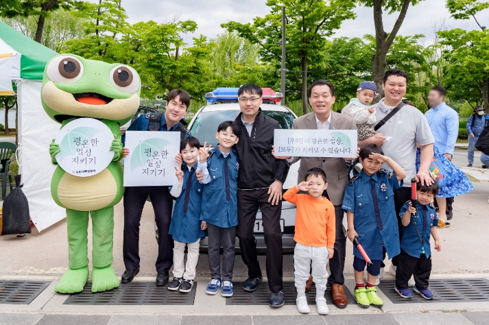 ▲ 지난 11일 이재준 수원특례시장이 광교호수공원에서 열린 2024 수원시새빛가족축제에 참가한 가족들과 함께 기념촬영을 하고 있다. |