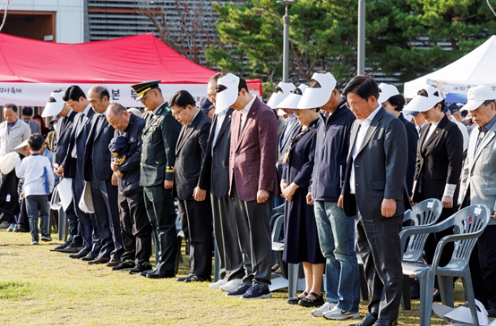 ▲ 지난해 처음 열린 마포구 호국보훈 감사축제에서 묵념하는 박강수 구청장(오른쪽) |