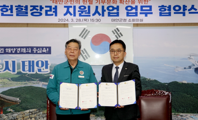 이번 협약은 생명 나눔 실천과 헌혈 장려를 위해 혈액원이 추진하는 ‘사랑의 헌혈 릴레이’의 일환으로, 대전·세종·충남 중에서는 태안군에서 최초로 시행됐다.