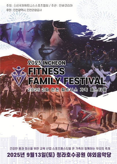 [뉴스서치] ‘2025 인천 피트니스 패밀리 페스티벌’이 오는 9월 13일 청라호수공원 야외음악당에서 열린다. 이번 행사는 ‘바른 몸, 바른 자세, 바른 마음’이라는 주제로 시민들이 건강하고 조화로운 삶을 실천할 수 있도록 돕는 것을 목표로 한다.