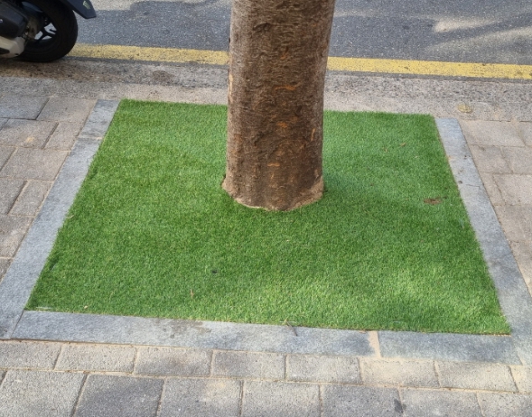 ▲ 가로수 식수대 인조잔디 보호덮개로 개선 |