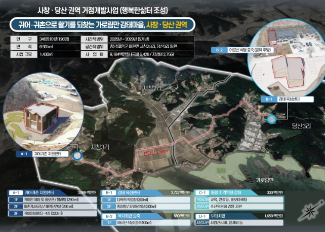 군은 이번 공모 선정을 바탕으로 국비 48억여 원 포함 총 사업비 68억 7700만 원을 투입해 내년부터 2029년까지 5년간 3개 마을 6.93㎢ 면적에서 기초생활기반 확충과 지역역량 강화를 위한 각종 사업을 추진, 사창·당산권역에 활기를 불어넣을 예정이다.