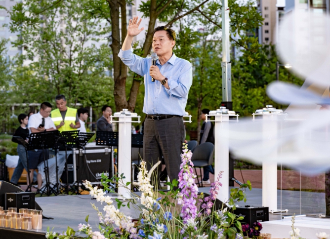 수원시가 수원수목원 개원 1주년을 기념해 28일 일월수목원 잔디광장에서 개최한 ‘별 헤는 가든 음악회’에 함께한 이재준 시장은 “수원수목원과 곳곳에 조성되는 손바닥정원이 수원을 더 아름답게 만들고 있다”며 “아름다운 도시를 만드는 데 함께해주시는 손바닥정원단, 환경 분야 종사자·봉사자, 시민들에게 정말 감사드린다”고 밝혔다.