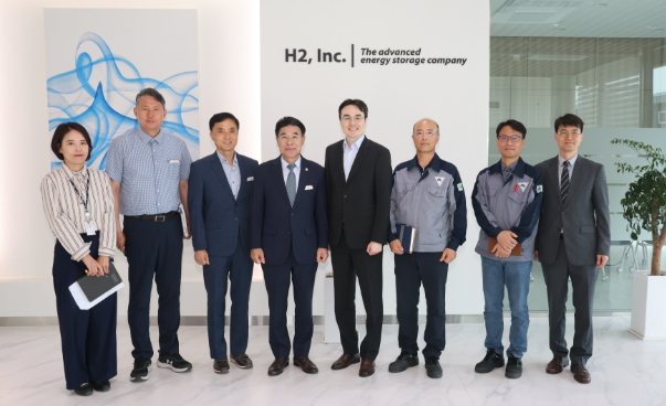 이날 방문한 ㈜에이치투는 바나듐 흐름전지를 이용한 에너지저장장치(ESS)를 생산하는 기업으로 해외에서도 기술력을 인정받아 독일에 제품을 수출하고 있으며 지난해 6월 5173㎡의 부지에 건축 면적 4880㎡의 공장을 준공하고 대전에서 이전했다.