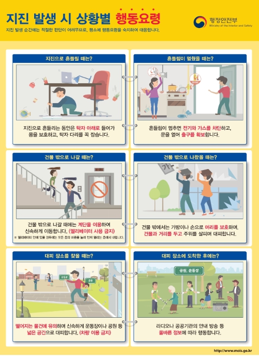 ▲ 지진 발생 시 상황별·장소별 행동요령 |