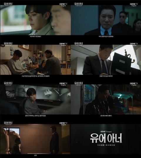 지니 TV 오리지널 드라마 ‘유어 아너’(크리에이터 표민수, 극본 김재환, 연출 유종선, 기획 KT스튜디오지니, 제작 ㈜테이크원스튜디오 ㈜몬스터컴퍼니)는 자식을 위해 괴물이 되기로 한 두 아버지의 부성 본능 대치극이다.