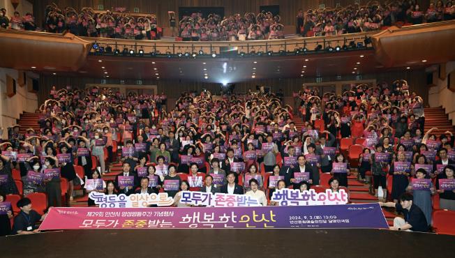 [뉴스서치] 안산시는 양성평등주간(9월 1일~7일)을 기념해 지난 3일 안산문화예술의전당 달맞이극장에서 ‘제29회 양성평등주간 기념행사’를 개최했다고 4일 밝혔다.