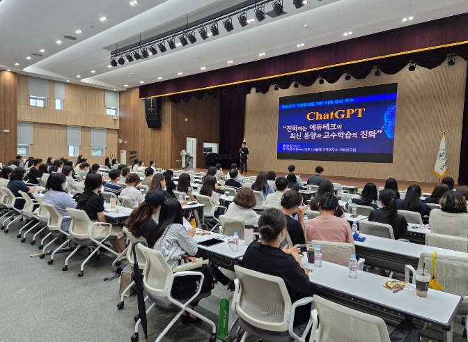 이번 연수는 특수교육 관련 교사를 대상으로 급변하는 미래교육 환경에 대응하기 위한 에듀테크에 대한 이해와 특수교육에 적합한 에듀테크 적용 능력 함양을 위하여 마련했다. 홍영일 대표이사(재미와의미연구소)가 강의를 맡았으며, 연수 과정은 ‘진화하는 에듀테크의 최신 동향과 교수학습의 진화’라는 주제로 △인공지능 챗봇을 활용한 보고 듣고 말하기, △생성형 AI를 활용한 수업 설계, △AI 프로그램을 통한 수업자료 PPT 만들기 등의 내용으로 진행됐다.