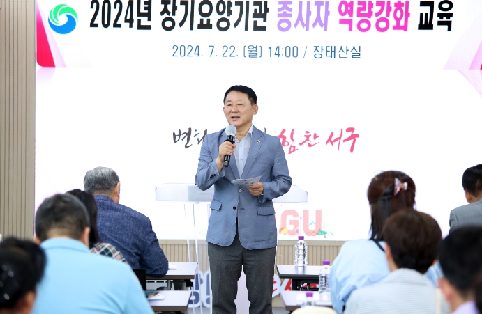 [뉴스서치] 대전 서구는 22일 구청 장태산실에서 관내 장기요양기관 종사자 100여 명을 대상으로 ‘2024년 장기요양기관 종사자 역량강화 교육’을 개최했다.