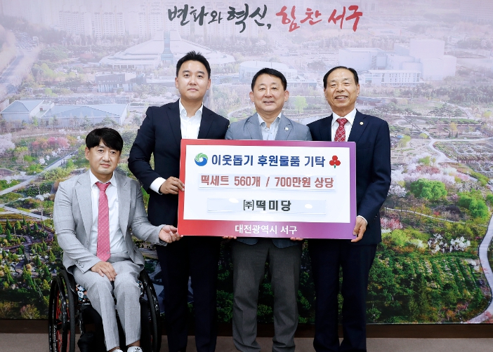 [뉴스서치] 대전 서구는 22일 갑천누리실에서 식품업체 떡미당으로부터 떡 세트 560개(700만 원 상당)를 기탁받았다.