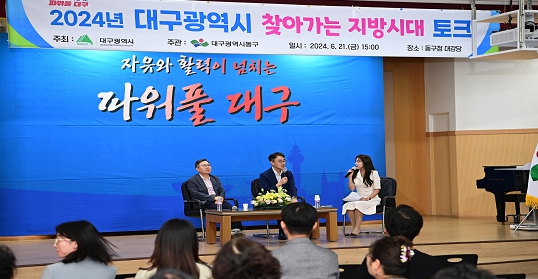 [뉴스서치] 대구 동구청은 지난 21일 동구청 대회의실에서 150여 명의 주민들이 참여한 가운데 ‘2024 찾아가는 지방시대 토크’를 개최했다.