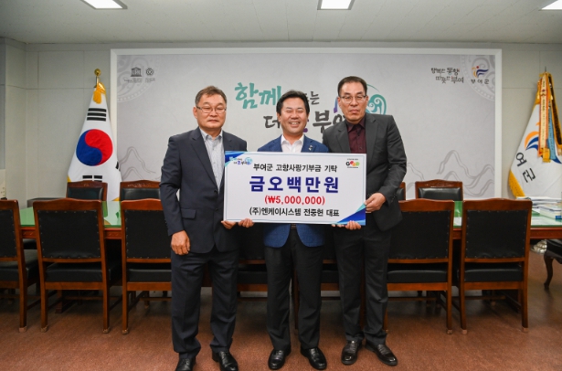 [뉴스서치] ㈜엔케이시스템 전중현 대표(공동대표 서천수)가 지난 18일 부여군에 고향사랑기부금 개인 최고액인 500만 원을 기부했다.